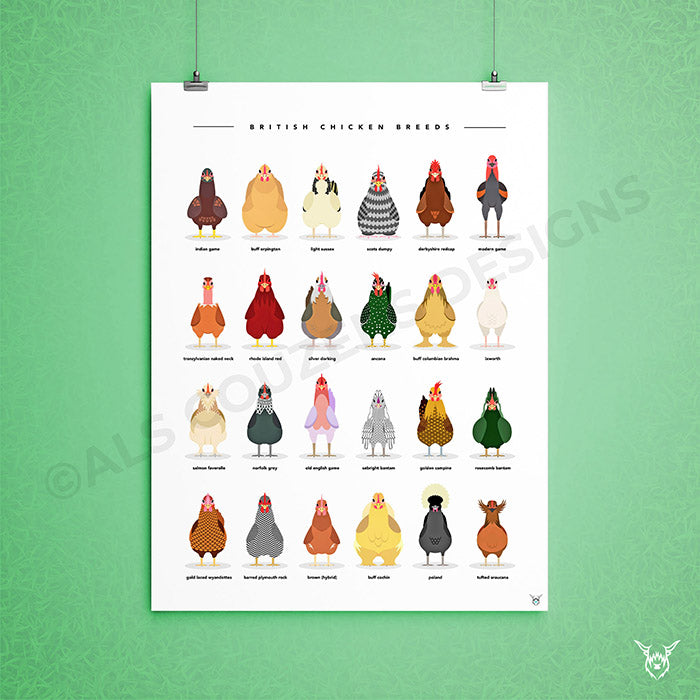 Breeds Included: Indian Game, Buff Orpington, Light Sussex, Scots Dumpy, Derbyshire Redcap, Modern Game, Transylvanian Naked Neck, Rhode Island Red, Silver Dorking, Ancona, Buff Columbian Brahma, Ixworth, Salmon Faverolle, Norfolk Grey, Old English Game, Sebright Bantam, Golden Campine, Rosecomb Bantam, Gold Laced Wyandottes, Barred Plymouth Rock, Brown (Hybrid), Buff Cochin, Poland, Tufted Araucana.