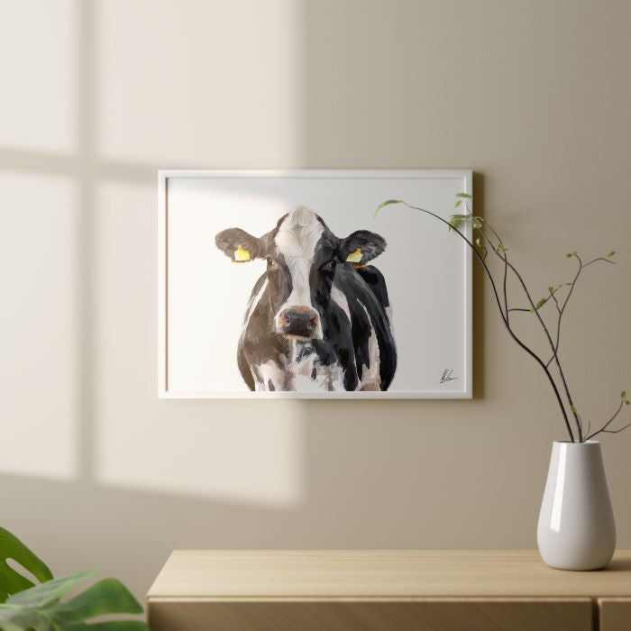 A modern art print of a Holstein Friesian dairy Cow.