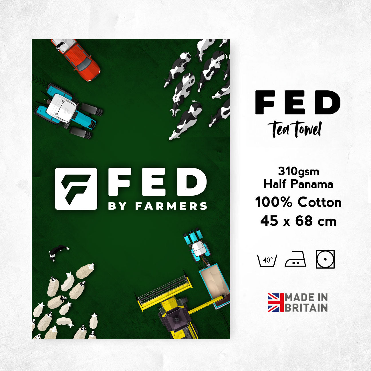 A fun tea towel with FED graphics! The perfect gift for any farmers.