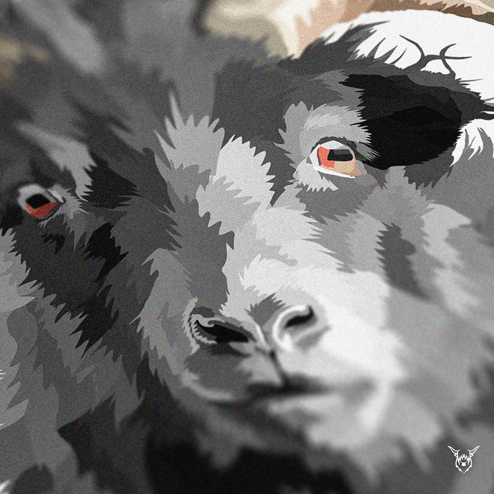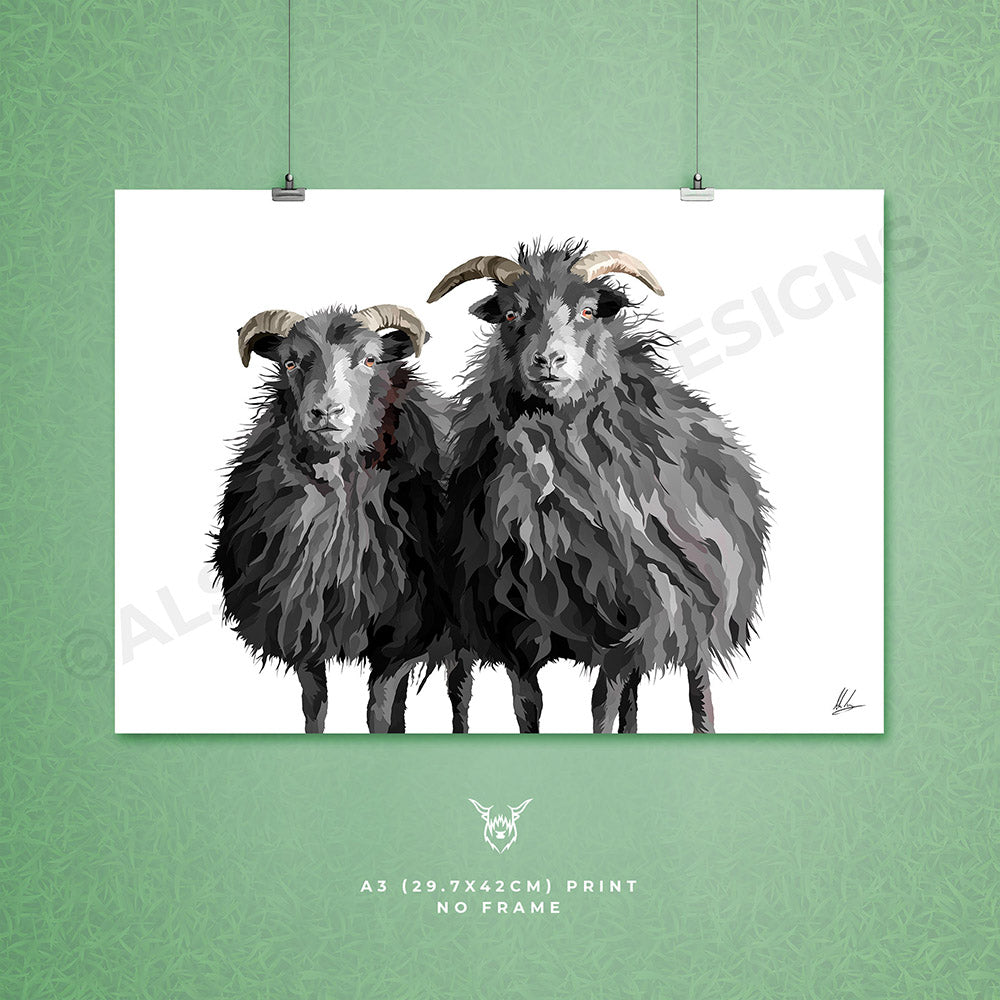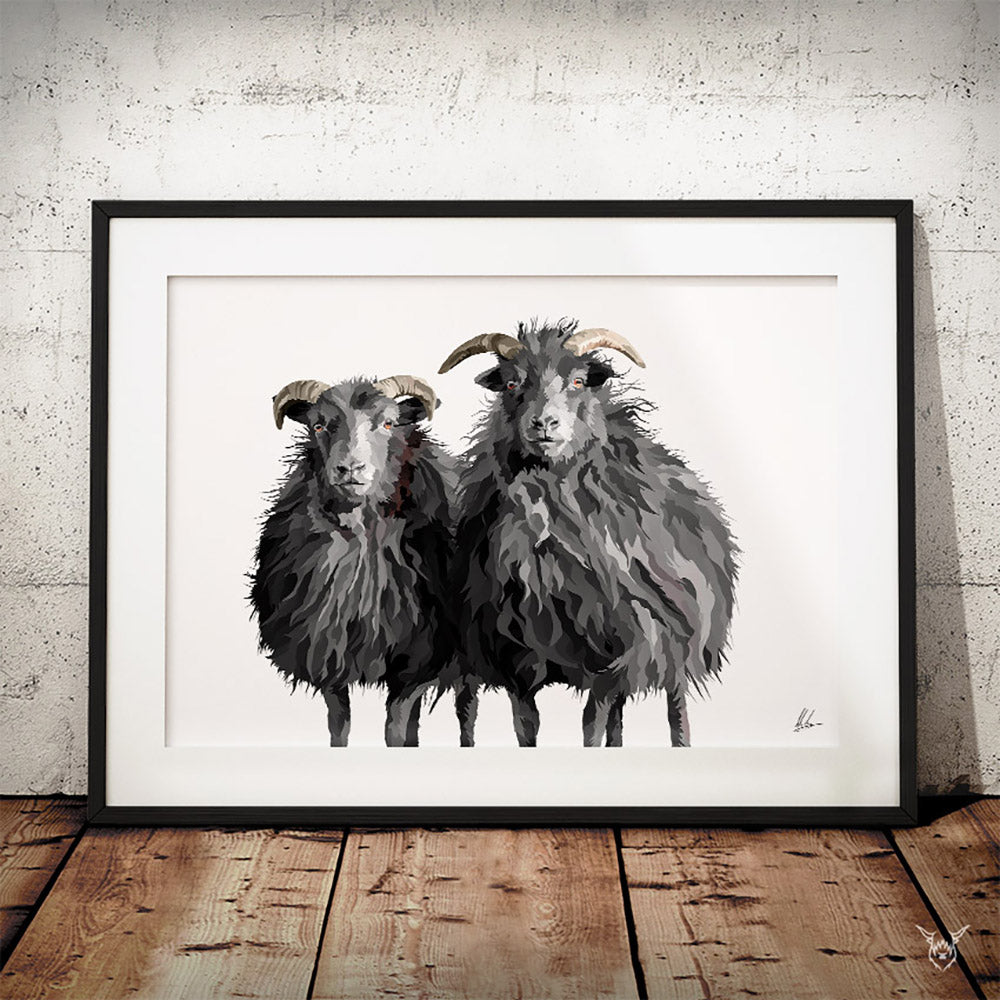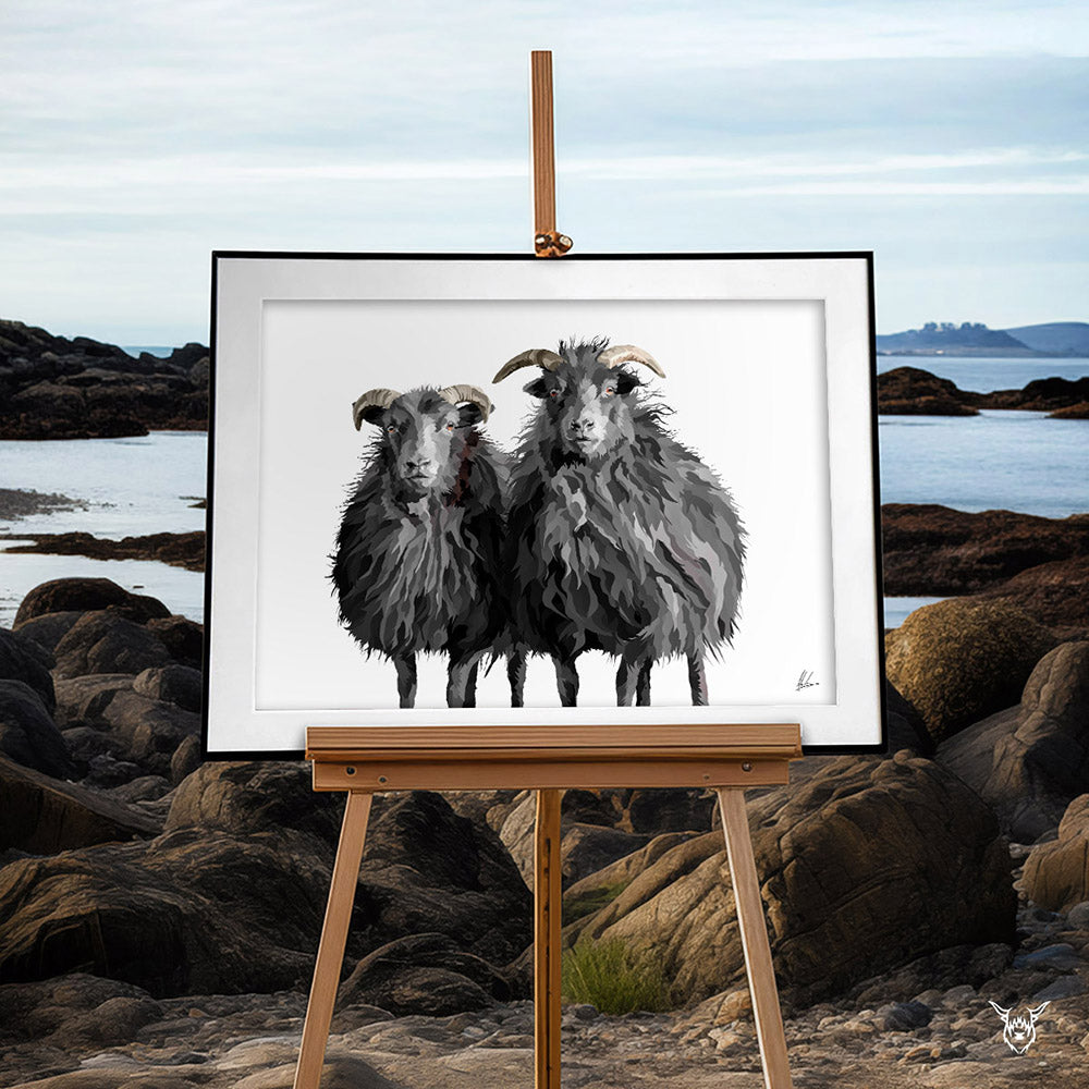 A modern art print of two beautiful Hebridean Sheep