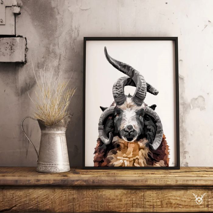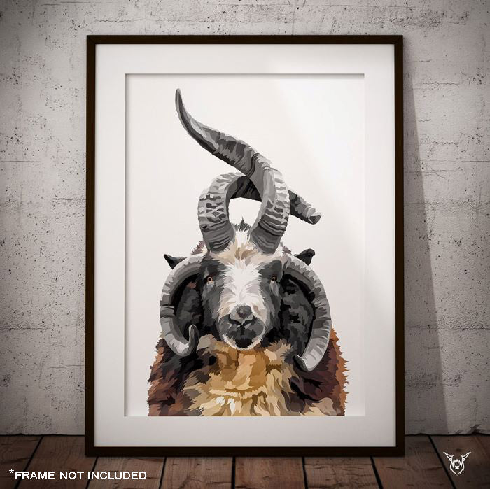 A modern art print of a spectacular Jacob Ram.