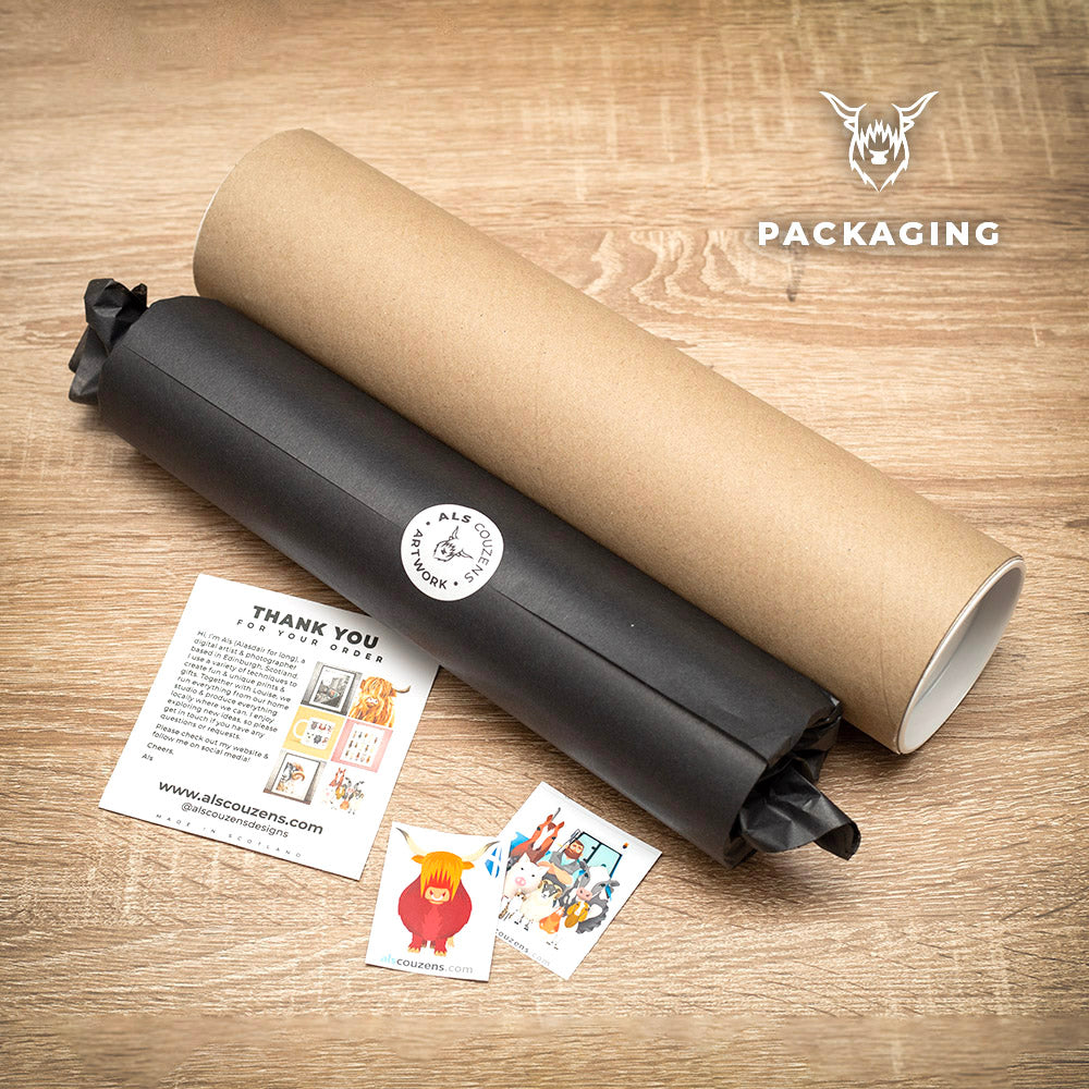 All prints are rolled and shipped in a protective postal tube.